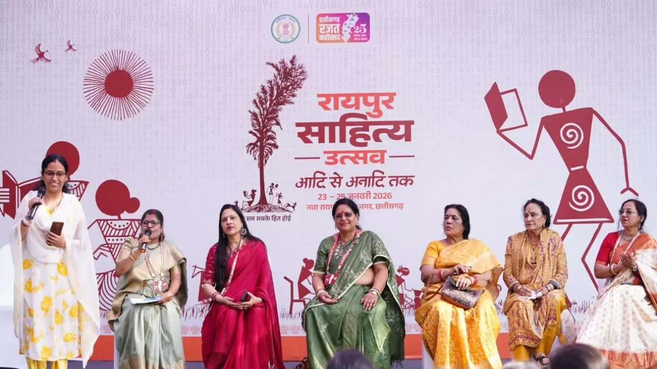 Raipur Literature Festival: रायपुर। नवा रायपुर में आयोजित रायपुर साहित्य उत्सव 2026 पूरे उत्साह और साहित्यिक गरिमा के साथ जारी है। उत्सव के अंतर्गत सुरजीत नवदीप मंडप में महिला साहित्यकारों के विशेष काव्य-पाठ सहित काव्य एवं व्यंग्य के कई सत्र आयोजित किए गए, जिनमें प्रदेश के विभिन्न अंचलों से आए 90 से अधिक नवोदित एवं समकालीन रचनाकारों ने सहभागिता की।