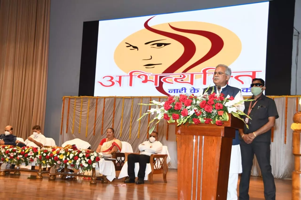 रायपुर, 08 मार्च 2021। मुख्यमंत्री भूपेश बघेल आज महिला दिवस के अवसर पर साईंस कॉलेज परिसर स्थित ऑडिटोरियम में छत्तीसगढ़ पुलिस द्वारा आयोजित अभिव्यक्ति कार्यक्रम में सम्मिलित हुए। इस अवसर पर बघेल द्वारा समाज के विभिन्न क्षेत्रों में उल्लेखनीय योगदान देने वाली महिलाओं का सम्मान किया गया। कार्यक्रम में मुख्यमंत्री बघेल ने कहा कि आधी आबादी को सम्मानित करते हुए प्रसन्नता हो रही है। यदि महिलाएं कमजोर होती हैं तो समाज आगे नहीं बढ़ पाता है। आज किसी भी क्षेत्र में महिलाएं पीछे नहीं हैं, महिलाएं आटो-रिक्शा से लेकर फाइटर प्लेन तक उड़ा रही हैं। छत्तीसगढ़ के नक्सल क्षेत्र में तैनात दंतेश्वरी फाइटर्स में महिलाएं बहादुरी से कार्य कर रही हैं और इन्होंने नक्सलियों के कई कैम्प ध्वरत किए हैं। आज किसी भी परीक्षा का परिणाम आता है, तो मेरिट में सबसे ऊपर महिलाएं ही होती हैं। यदि लोकतंत्र की बात करें तो छत्तीसगढ़ में महिलाओं की स्थिति देश के कई प्रदेशों से बेहतर है। छत्तीसगढ़ की विधानसभा में सर्वाधिक महिलाओं का प्रतिनिधित्व है। महिलाओं को अभिव्यक्ति का अधिकार मिलना चाहिए। हम लोगों को घर में अपने बेटों को सिखाना चाहिए कि महिलाओं के प्रति कैसा व्यववहार करना है ? आज महिलाओं को भी उनके साथ हो रहे अत्याचार के विरूद्ध आवाज उठाना जरूरी हो गया है। यदि आप बर्दाश्त करती रहेंगी तो अपराधियों के हौसले बढ़ेंगे। छत्तीसगढ़ में कौशिल्या माता, शबरी माता, बिलासा बाई, मिनीमाता, फुलबासन यादव, तीजनबाई आदि महिलाओं ने राज्य का मान बढ़ाया है।
