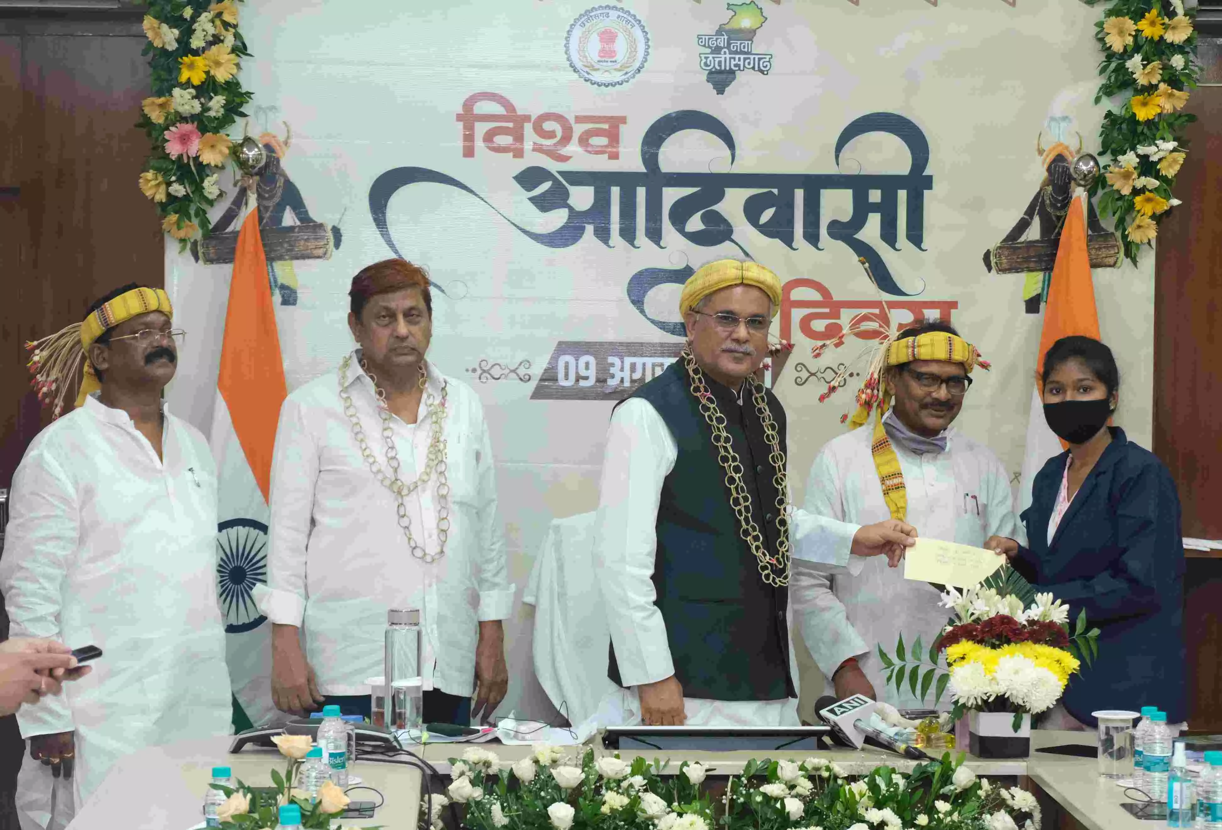 रायपुर 9 अगस्त 2021. मुख्यमंत्री भूपेश बघेल ने विश्व आदिवासी दिवस के अवसर पर अपने निवास कार्यलय में आयोजित वर्चुअल कार्यक्रम में प्रयास आदर्श आवासीय विद्यालयों, एकलव्य आदर्श आवासीय विद्यालयों एवं जिलों के स्थानीय प्रकल्पों से आईआईटी, एनआईटी, ट्रिपल आई.टी. तथा मेडिकल कालेजों में प्रवेशित कुल 83 छात्र-छात्राओं को सम्मानित किया। मुख्यमंत्री ने इन विद्यार्थियों में से अनुराग लकड़ा, संदीप कुमार तिग्गा, कु. ज्योति रउतिया एवं कु साक्षी भगत को अपने निवास कार्यालय में तथा शेष 79 विद्यार्थियों को वर्चुअल रूप से सम्मानित किया। इन सभी विद्यार्थियों को इस अवसर पर लेपटाप के लिए 50-50 हजार रूपए की अनुग्रह राशि भी दी गई।