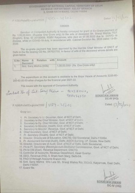 दिल्ली के मुख्यमंत्री ने दिए 1 करोड़ सहयोग राशि… CM केजरीवाल ने कोरोना संक्रमित दिवंगत शिक्षक के आश्रित के लिए दिखाई संवेदनशीलता, छत्तीसगढ़ में बीमा कवर व परिवार पेंशन क्यो नहीं?