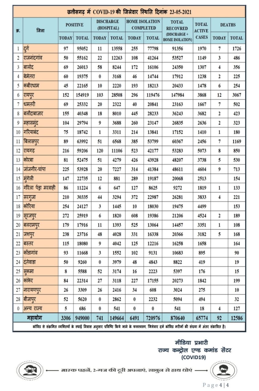 हालांकि मौत का आंकड़ा अभी भी रायपुर में ही सबसे ज्यादा है। रायपुर में आज सबसे ज्यादा 12 मौतें हुई है।