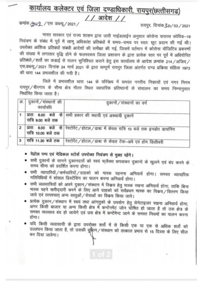 रायपुर में जल्द बंद होगी दुकानें और बाजार, आदेश जारी