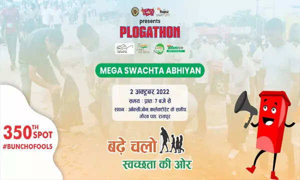 रायपुर। अभिनव प्रयासों से स्वच्छता का संदेश देने निरंतर प्रयासरत "बंच ऑफ फूल्स " की टीम अपना 350 वाँ कार्यक्रम गांधी जयंती पर पंडरी में बने ऑक्सीज़ोन में आयोजित कर रही है ॥ महापौर एजाज़ ढेबर सहित नगर निगम , रायपुर वन मंडल ,रायपुर स्मार्ट सिटी लि.,स्वच्छ भारत मिशन सहित शहर के एन जी ओ , एन सी सी , एन एस एस , नेहरू युवा केंद्र के सदस्य रविवार 2 अक्टूबर को सुबह 7 बजे से आक्सीज़ोन में "प्लॉगाथान"में शामिल होकर सामूहिक श्रमदान करेंगे ॥ इस अवसर पर स्थानीय कलाकारों द्वारा बापू के भजन की प्रस्तुति भी होगी।