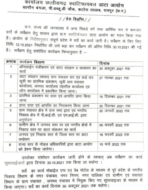 डेटा आयोग का डेट बढ़ाः पिछड़ा वर्ग और आर्थिक दृष्टि से कमजोर लोगों के सर्वेक्षण की तारीख बढ़ाई गई, अब 30 अक्टूबर तक डेटा आयोग करेगा सर्वेक्षण