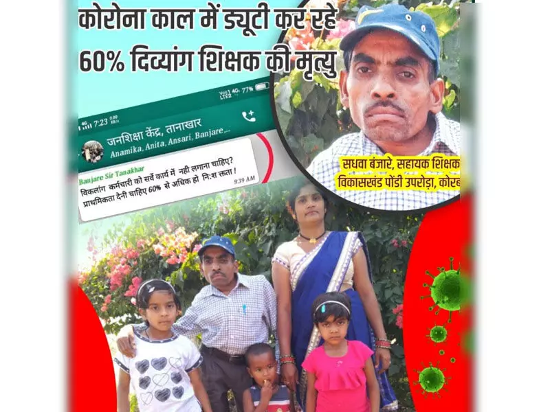 कोरोना ड्यूटी के दौरान दिव्यांग शिक्षक सधवा बंजारे संक्रमित हुए थे। जबकि राज्य शासन का स्पष्ट आदेश था कि कोरोना की ड्यूटी में दिव्यांग, गर्भवती और शिशुवती महिलाओं की ड्यूटी ना लगायी जाये, बावजूद नियमों को ताक पर रखकर दिव्यांग शिक्षक की ड्यूटी लगा दी गयी। 60 प्रतिशत दिव्यांग इस शिक्षक की ड्यूटी घर घर जाकर कोरोना के लक्षण वाले मरीजों के सर्वे में लगायी गयी थी।