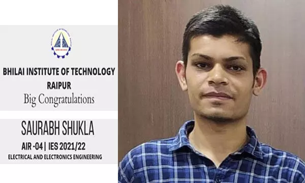 रायपुर 13 अप्रैल 2022 I भिलाई प्रौद्योगिकी संस्थान, रायपुर के इलेक्ट्रिकल एंड इलेक्ट्रॉनिक्स इंजीनियरिंग ब्रांच के छात्र सौरभ शुक्ला ने यूपीएससी द्वारा आयोजित इंडियन इंजीनियरिंग सर्विसेस(IES)2021 की परीक्षा में ऑल इंडिया 4th रैंक हासिल किया ,इसके साथ ही गेट 2021 की परीक्षा में सौरभ ने ऑल इंडिया 219 रैंक हासिल किया । वर्तमान में सौरभ एम्स,दिल्ली में जूनियर इंजीनियर के पद पर कार्यरत हैं। उनकी सफलता पर इलेक्ट्रिकल एंड इलेक्ट्रॉनिक्स ब्रांच के विभागाध्यक्ष प्रो. अभिषेक साहू ने बताया कि सौरभ शुरू से ही मेधावी छात्र रहे हैं ,पूरे विभाग की ओर से शुभकामनाएं देते हुए कहा कि सौरभ संस्था के सभी छात्रों के लिए एक प्रेरणा स्रोत हैं।कॉलेज के प्राचार्य डॉ अनूप मिश्रा ने सौरभ की इस सफलता पर बधाई देते हुए कहा कि सौरभ ने संस्था के साथ साथ छत्तीसगढ़ राज्य को भी गौरवान्वित किया है, इसके लिए पूरी संस्था की ओर से हम उनको बहुत-बहुत बधाई देते हैं और उनके उज्जवल भविष्य की कामना करते हैं।