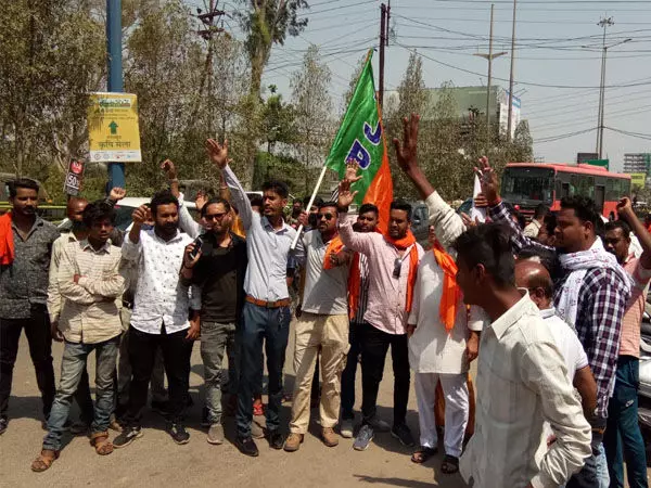 रायपुर 12 मार्च 2022। तेलीबांधा शराब भट्टी के सामने संचालित आवैध अहाता को बंद करने की मांग को लेकर भाजयुमो ने आज जमकर प्रदर्शन किया। भाजयुमो ने इस बाबत थाना तेलीबांधा में एक ज्ञापन भी दिया।