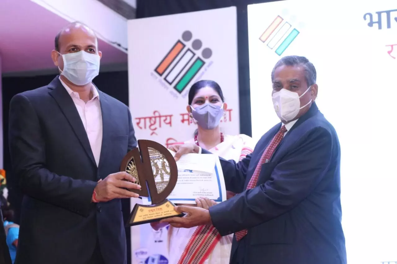 निर्वाचन कार्यों के संपादन में उत्कृष्ट कार्य करने के लिए सर्वश्रेष्ठ जिला के रूप में दुर्ग जिला पुरस्कृत…. कलेक्टर एवं जिला निर्वाचन अधिकारी डाॅ. सर्वेश्वर नरेंद्र भुरे ने ग्रहण किया सम्मान
