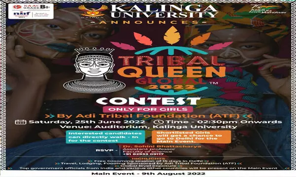 रायपुर 25 जून, 2022 I कलिंगा विश्वविद्यालय, नया रायपुर, छत्तीसगढ़, द्वारा ट्राइबल क्वीन ग्लोबल प्रतियोगिता 2022 के लिए अंतर्राष्ट्रीय आदिवासी छात्रों की चयन प्रक्रिया रखी गयी थी, जो 9 अगस्त को विश्व आदिवासी दिवस के दिन संध्या को नई दिल्ली में आयोजित होने जा रही है।