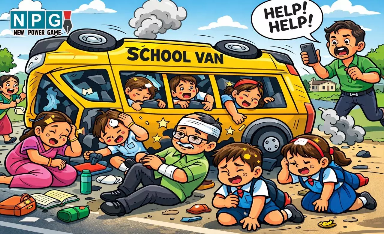 जांजगीर-चांपा: बच्चों और शिक्षकों से भरी स्कूल वैन पलटी, 15 छात्रों समेत टीचर्स और प्रिंसिपल घायल