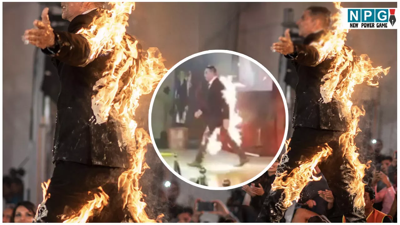 Akshay Kumar का आग वाला रैंप वॉक: खुद के कपड़ो को जलाकर किया खतरनाक स्टंट, देखिए वायरल वीडियो