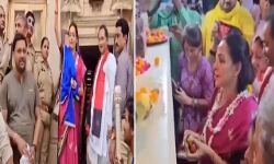 #WATCH | Mathura, Uttar Pradesh: BJP MP and candidate from UP's Mathura, Hema Malini offers prayers at Sri Radha Raman Temple. pic.twitter.com/KJaQ2TDey1
