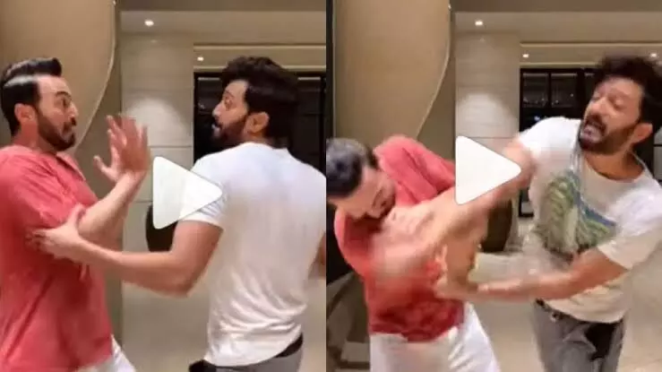 मुम्बई 25 अक्टूबर 2021। फिल्म 'जाने तू या जाने ना' में जेनेलिया को अयाज खान ने चांटा मार दिया था। अब रितेश देशमुख में इसका बदला लिया हैl यह मजाकिया वीडियो अयाज खान ने सोशल मीडिया पर शेयर किया है जो कि बड़ी तेजी से वायरल हो रहा हैl रितेश देशमुख ने अदिति का बदला ले लिया है।