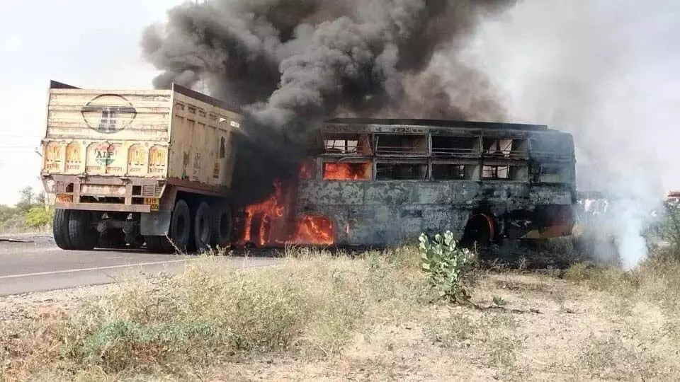 12 यात्री जिंदा जले: हाईवे पर भयानक सड़क हादसा, टैंकर और बस में जोरदार टक्कर... 12 की जलकर मौत, मची अफरा-तफरी