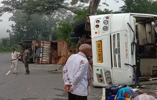 बस और ट्रक की टक्कर में 4 लोगों की मौत, 35 घायल...तीर्थयात्री से भरी बस और सब्जी लदे ट्रक के बीच टक्कर