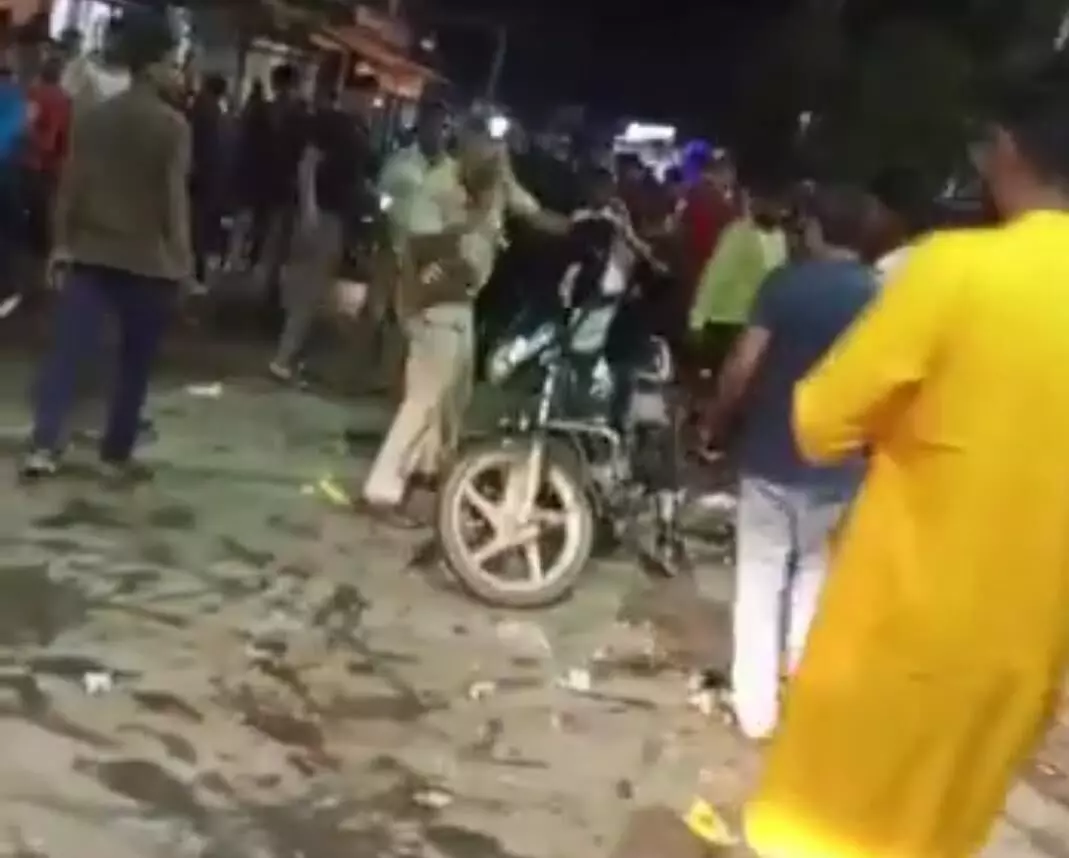 मिली जानकारी के अनुसार वीडियो कोरबा के बांकी मोगरा थाना क्षेत्र में घटित हुई है। यहां जन्माष्टमी की रात लोग कृष्ण भक्ति में डूबे थे। मंदिरों के आसपास बड़ी संख्या में भीड़ थी। तभी एक युवक ने अपनी बाइक को खड़े होकर ही स्टार्ट हालत में नचाना शुरू कर दिया। युवक की यह हरकत देख दर्शनार्थी भयभीत हो गए। लेकिन उसे रोकने की हिम्मत कोई नहीं कर रहा था। तभी वहां मौजूद पुलिस ने युवक को बाइक समेत घटना स्थल से दूर भगा दिया। युवक शराब के नशे में था। इसलिए वह दुबारा फिर से वही आकर स्टंट करने लगा। तब वहां मौजूद सब इंस्पेक्टर माधव तिवारी ने उद्दंड युवक को सबक सिखाते हुए कई थप्पड़ जड़ दिए। हालांकि घटना का वीडियो जारी होने के बाद कई लोग पुलिस का समर्थन कर रहे हैं तो कई इसे गलत बता पुलिस द्वारा वैधानिक कार्यवाही की बात कह रहे हैं।