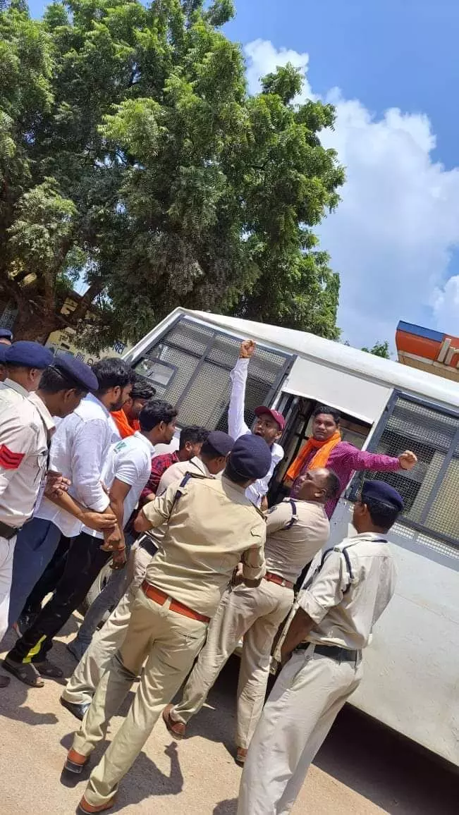 BJYM कार्यकर्ता गिरफ्तार: सीएम को काले झंडे दिखाने की कोशिश...पुलिस ने भाजयुमो कार्यकर्ताओं को गिरफ्तार किया
