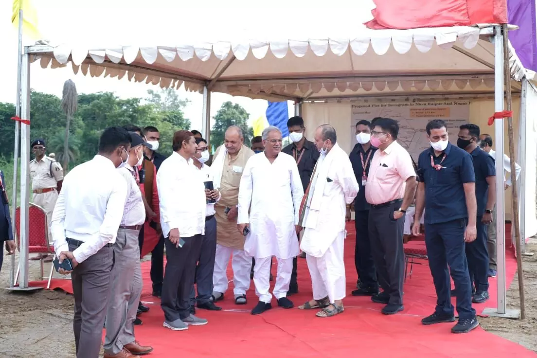 रायपुर, 19 अक्टूबर 2021। आजादी के 75वें वर्ष में आजादी की लड़ाई के मूल्यों, सिद्धांतों, आदर्शों तथा महात्मा गांधी की ग्राम-स्वराज की संकल्पना को अक्षुण्ण रखने के लिए नवा-रायपुर में भी वर्धा की तर्ज पर सेवा-ग्राम की स्थापना की जाएगी। मुख्यमंत्री भूपेश बघेल ने मंगलवार को राहुल गांधी के रणनीतिक सलाहकार सचिन राव के साथ नया रायपुर में बनने वाले सेवा ग्राम के लिए चिन्हांकित स्थल का निरीक्षण किया। निरीक्षण के दौरान अधिकारियों ने बताया कि सेवा ग्राम के लिए नवा-रायपुर 76.5 एकड़ की जमीन चिन्हांकित की गई है। यह स्थान नया रायपुर के लेयर वन से लगा हुआ है। इस स्थल में लगभग पांच एकड़ क्षेत्र में दो नहर भी है। शेष 75 एकड़ भूमि में सेवा ग्राम बसाया जाएगा। सेवा ग्राम को इस ढंग से विकसित किया जाएगा कि वहां छत्तीसगढ़ की परंपरागत ग्रामीण भवन शैली की झलक दिखें। निर्माण कार्यों में स्थानीय स्तर पर उपलब्ध निर्माण सामग्री का उपयोग होगा। आश्रम के अंदर की सड़के भी ग्रामीण परिवेश के अनुरूप होंगी। सेवा ग्राम तक पूरा क्षेत्र हरियाली से भरपूर रहेगा। आश्रम का पूरा वातावरण आत्मिक शांति प्रदान करेगा। इस मौके पर कृषि मंत्री रविन्द्र चौबे, वन मंत्री मोहम्मद अकबर, विधायक देवेन्द्र यादव, अपर मुख्य सचिव सुब्रत साहू, विशेष सचिव कृषि डॉ. एस. भारतीदासन, एनआरडीए के मुख्यकार्यपालन अधिकारी डॉ. फकीर भाई अय्याज तम्बोली, संचालक उद्योग अनिल टुटेजा, कलेक्टर रायपुर सौरभ कुमार भी उनके साथ थे।
