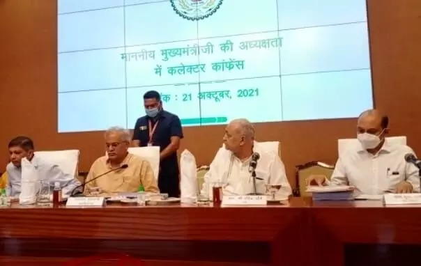 रायपुर, 21 अक्टूबर 2021। मुख्यमंत्री भूपेश बघेल की अध्यक्षता में कलेक्टर कांफ्रेंस शुरू हो चुकी है। मुख्यमंत्री ने ग्रास रूट पर बेसिक एडमिनिस्ट्रेशन पर ज्यादा ध्यान देने पर जोर दिया है। साथ ही, कलेक्टरों से दो टूक कहा कि मंत्रालय से लिए गए निर्णय को धरातल पर पहुंचाने का बीड़ा जिला प्रशासन पर है। इसकी समीक्षा आंकड़ों से नहीं, छत्तीसगढ़ के नागरिकों को इन योजनाओं से पहुंचे प्रत्यक्ष लाभ से कलेक्टरों के परफॉर्मेंस का आंकलन किया जाएगा। राजस्व प्रशासन के कार्य सीधे तौर पर किसानों, नागरिकों से जुड़े हुए हैं। ज़िला प्रशासन इसे सर्वोच्च प्राथमिकता दें। मुख्यमंत्री ने कहा कि शासन और प्रशासन के मध्य परस्पर संवाद आवश्यक है, इसीलिए आज हम सब यहां एक परिवार की भांति उपस्थित हैं। मुख्यमंत्री ने कोरोना मैनेजमेंट पर कलेक्टरों की पीठ थपथपाई। उन्होंने कहा कि कोविड महामारी में प्रशासन ने बहुत बेहतर ढंग से कार्य किया है। आज छतीसगढ़ की अभिनव परियोजनाओं के कारण छत्तीसगढ़ मॉडल की चर्चा देश में हो रही है।