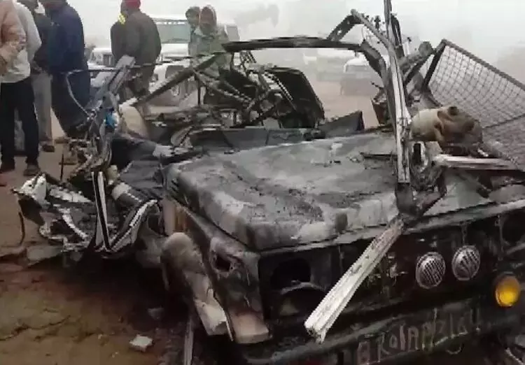 तीन पुलिसकर्मियों की मौत: पुलिस जिप्सी पर ट्रक पलटा,, तीन जवानों की मौके पर ही मौत, SI और ड्राइवर गंभीर