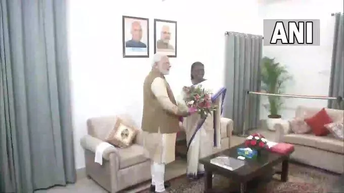 PHOTO: पीएम मोदी पहुंचे नई राष्ट्रपति द्रौपदी मुर्मू के घर, गुलदस्ता भेंट कर दी बधाई...देखें इन तस्वीरों को...