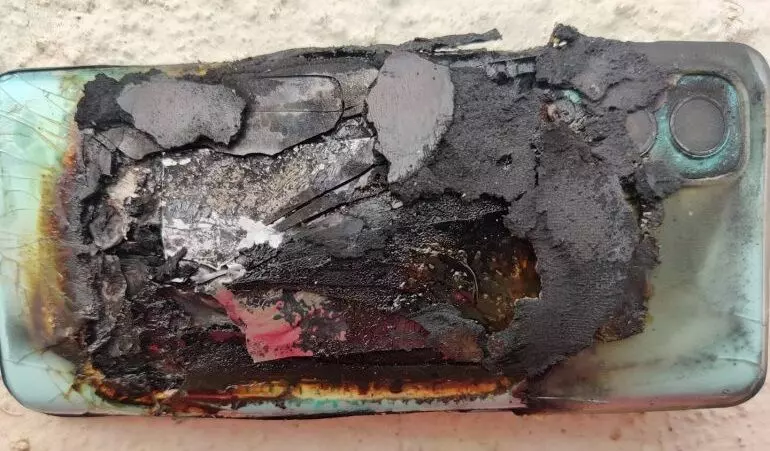 ट्विटर यूजर ने फोन के बैक के भी कई फोटोज को शेयर किया है। फोटो को देखकर कहा जा सकता है कि फोन में नीचे बाईं तरफ से आग लगनी शुरू हुई। ब्लास्ट के वक्त फोन ट्रांसपैरंट TPU केस में था और इसे देखकर ऐसा लग रहा है कि ब्लास्ट के बाद यह नीचे से दो हिस्सों में फट गया है।