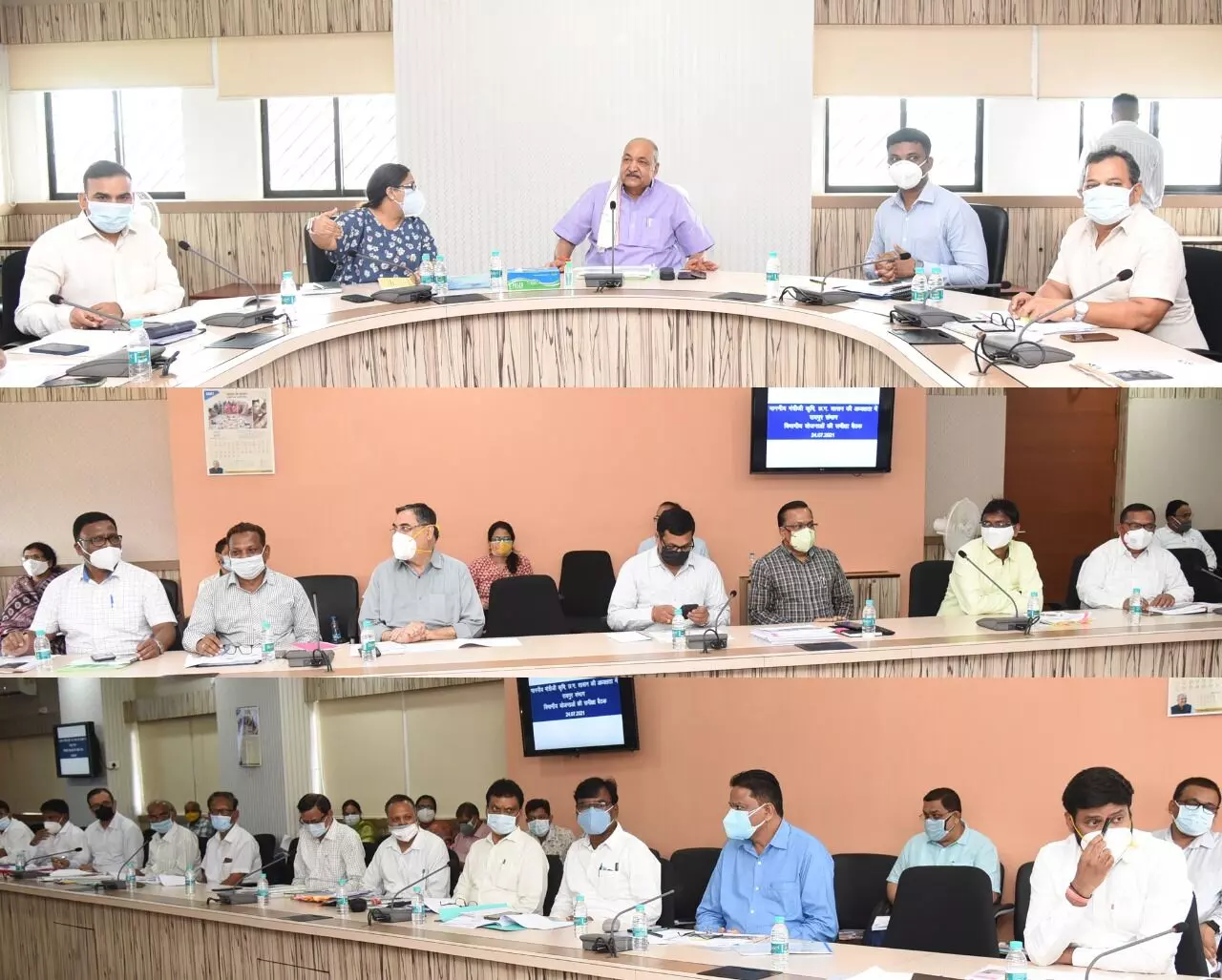 रायपुर, 24 जुलाई 2021। कृषि एवं जल संसाधन मंत्री रविंद्र चौबे ने आज यहां महानदी मंत्रालय भवन में कृषि, उद्यानिकी, पशुपालन एवं मत्स्य पालन विभाग के अधिकारियों की संयुक्त बैठक लेकर विभागीय योजनाओं एवं कार्यक्रमों के क्रियान्वयन की स्थिति की गहन समीक्षा की। मंत्री चौबे ने विभागीय अधिकारियों को खाद- बीज की क्वालिटी, वितरण की व्यवस्था एवं रेट पर कड़ी निगरानी रखने के निर्देश दिए । उन्होंने अधिकारियों को निजी दुकानदारों के रासायनिक उर्वरकों के विक्रय की व्यवस्था एवं मूल्य पर नियमित रूप से निगरानी रखने और किसी भी तरह की गड़बड़ी पाए जाने पर सख्त कार्रवाई के भी निर्देश दिए।