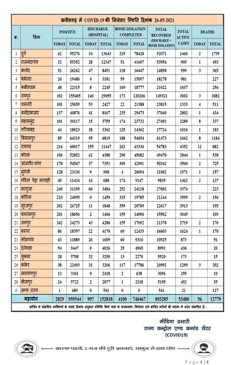 कोराना ब्रेकिंग : छत्तीसगढ़ में अब मरीज 3000 हजार से भी कम, मौत का आंकड़ा भी 60 से नीचे…..मरीज में सरगुजा और मौत में रायगढ़ टॉप पर… देखिये प्रदेश के आंकड़े