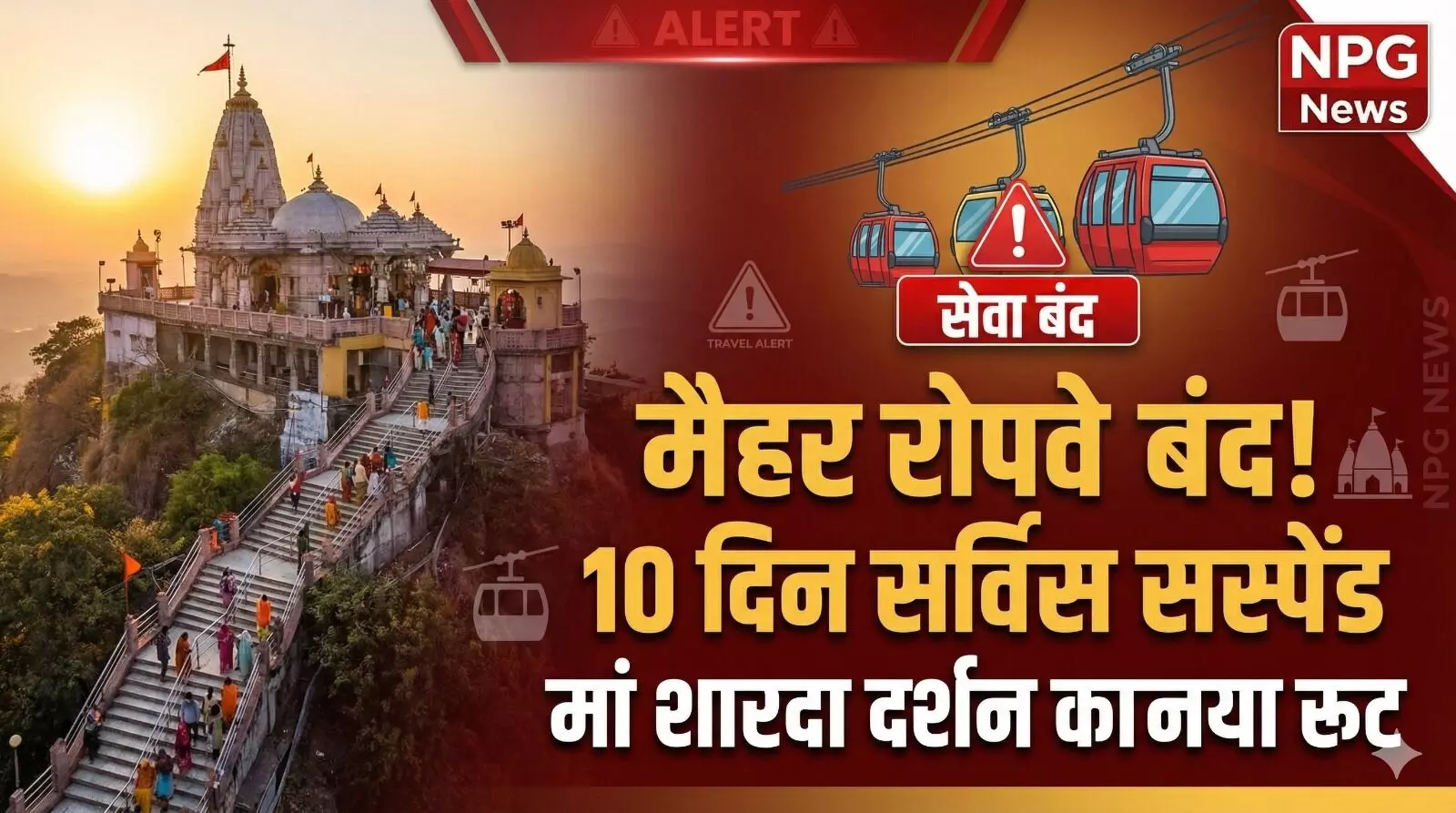 मैहर 5 March 2026: विश्व प्रसिद्ध शक्तिपीठ मां शारदा धाम (Maa Sharda Dham) जाने वाले श्रद्धालुओं के लिए एक बेहद जरूरी 'ट्रैवल अलर्ट' (Travel Alert) है। आगामी चैत्र नवरात्रि से ठीक पहले मंदिर प्रबंधन ने मैहर रोपवे सर्विस (Maihar Ropeway) को 10 दिनों के लिए सस्पेंड करने का फैसला लिया है। आज यानी 5 मार्च से लेकर 14 मार्च 2026 तक रोपवे सेवा पूरी तरह बंद रहेगी। यह फैसला लाखों श्रद्धालुओं की सुरक्षा और रोपवे के प्री-नवरात्रि मेंटेनेंस (Maintenance) को ध्यान में रखकर लिया गया है।