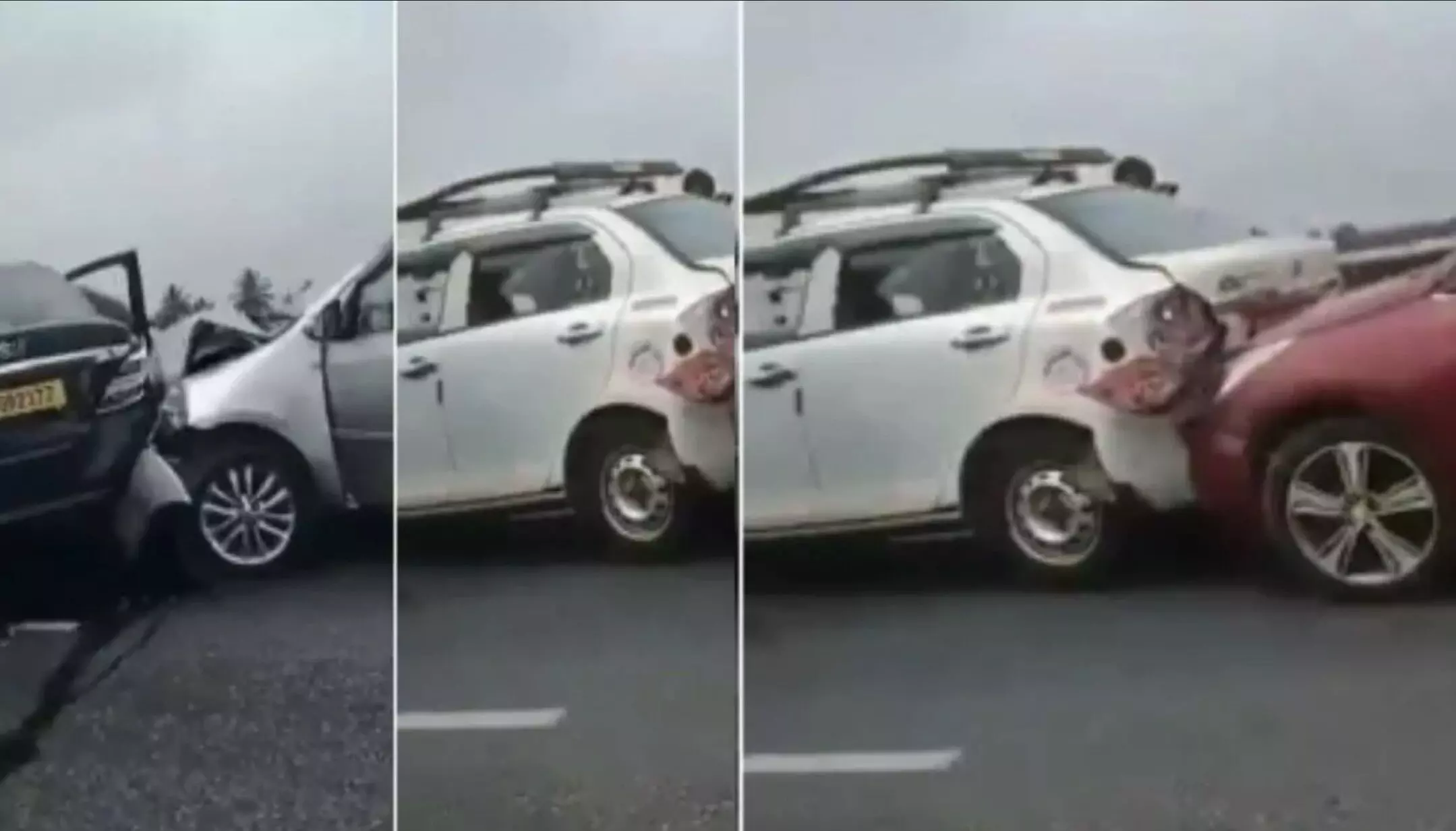 Bengaluru Road Accident: कर्नाटक की राजधानी बेंगलुरु में हवाई अड्डा मार्ग पर धुंध की वजह से 8 गाड़ियां आपस में टकरा गईं। हालांकि, हादसे में किसी के हताहत होने की सूचना नहीं है। हादसा सोमवार शाम बेंगलुरू हवाई अड्डा मार्ग पर देवनहल्ली के पास चिककजला फ्लाईओवर पर हुआ। हादसे का एक वीडियो भी सोशल मीडिया पर वायरल है, जिसमें 8 गाड़ियां आपस में टकराई नजर आ रही हैं। वीडियो देखकर लग रहा है कि आसपास काफी धुंध है।