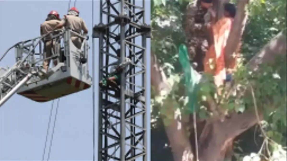 #WATCH | Delhi: Tamil Nadu farmers were brought down from the mobile tower after a few of them climbed up while protesting for their various demands. pic.twitter.com/sPoumKx0DB