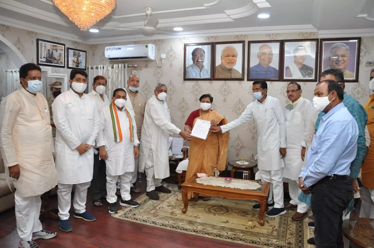 रायपुर 4 जून 2021। वैक्सीनेशन पर सियासी विवाद थमता नजर नहीं आ रहा है। अब इस मामले में कांग्रेस ने राज्यपाल को ज्ञापन सौंपा है। प्रदेश अध्यक्ष मोहन मरकाम की अगुवाई में मंत्री रविंद्र चौबे, मंत्री मोहम्मद अकबर, सत्यनारायण शर्मा, एजाज ढेबर, राजेंद्र तिवारी, गिरीश देवांगन, शैलेष नितिन त्रिवेदी ने राजभवन में राज्यपाल अनुसुइया उइके से मुलाकात की। मुलाकात के बाद रविंद्र चौबे ने केंद्र सरकार की वैक्सीन नीति पर गंभीर सवाल उठाये। चौबे ने कहा कि केंद्र की वैक्सीनेशन नीति में कई खामियां है। पैसे और आर्डर देने के बावजूद राज्यों को वैक्सीन नहीं मिल पा रही है।