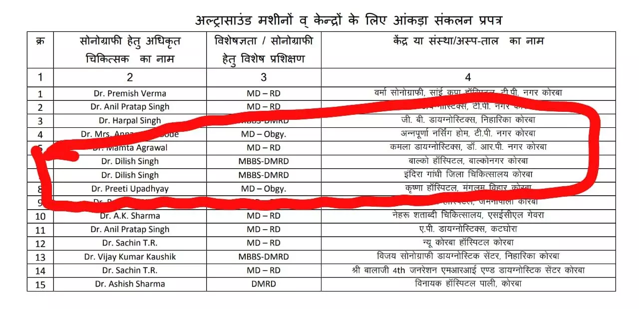 गौरतलब है कि जिले में बेहतर स्वास्थ व्यवस्था के लिए जिला खनिज न्यास मद से 12 विशेषज्ञ डॉक्टरों की नियुक्ति की गयी है। इन डॉक्टरों में एमबीबीएस, डीएम डॉ0 दिलीश सिंह को रेडियोलॉजिस्ट के पद पर 2 लाख रूपये प्रतिमाह की सेलरी पर नियुक्त किया गया है। जिला प्रशासन की मंशा थी कि जिले के सबसे बड़े अस्पताल में रेडियो लॉजिस्ट की नियुक्ति के बाद गर्भवती महिलाओं के साथ ही दूसरे मरीजों को सोनोग्राफी का लाभ मिल सकेगा। लेकिन रेडियो लॉजिस्ट जिला प्रशासन की आंखो में धूल झोकने के साथ ही स्वास्थ विभाग की नांक के नीचे बालको के अस्पताल में भी रेडियोलाजिस्ट के पद पर ज्वाईन कर डबल पगार ले रहे है। आपको बता दें, डीएमएफ से पोस्टेड डॉक्टरो के लिए सेवा शर्तो में निजी प्रेक्टिस के साथ ही दो-दो हॉस्पिटल में एक साथ नौकरी करने पर सख्त पाबंदी है। बावजूद इसके दिलीश सिंह के नाम पर जिला अस्पताल और बालको के विभागीय अस्पताल का अल्ट्रासाउंड मशीन पीसीपीएनडीटी एक्ट के तहत पंजीकृत है। एनपीजी के हाथ लगे दस्तावेज के बाद जब सीएमएचओं डॉ0 बीबी बोर्ड से जानकारी चाही गयी तो उन्होने कहा, मुझे इस बारे में कोई जानकारी नहीं है….अगर ऐसा है तो ये गलत है। उन्होंने कहा कि इस मामले में वे रेडियोलॉजिस्ट को नोटिस जारी करेंगे।