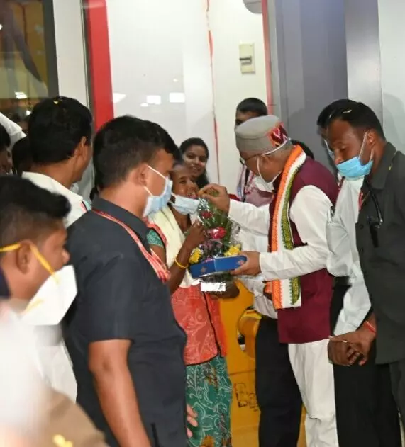 मुख्यमंत्री भूपेश बघेल ने सफ़ाई कर्मियों को एयरपोर्ट पर मिठाई खिलाकर किया अभिनंदन, बांटी पुरस्कार की खुशियां