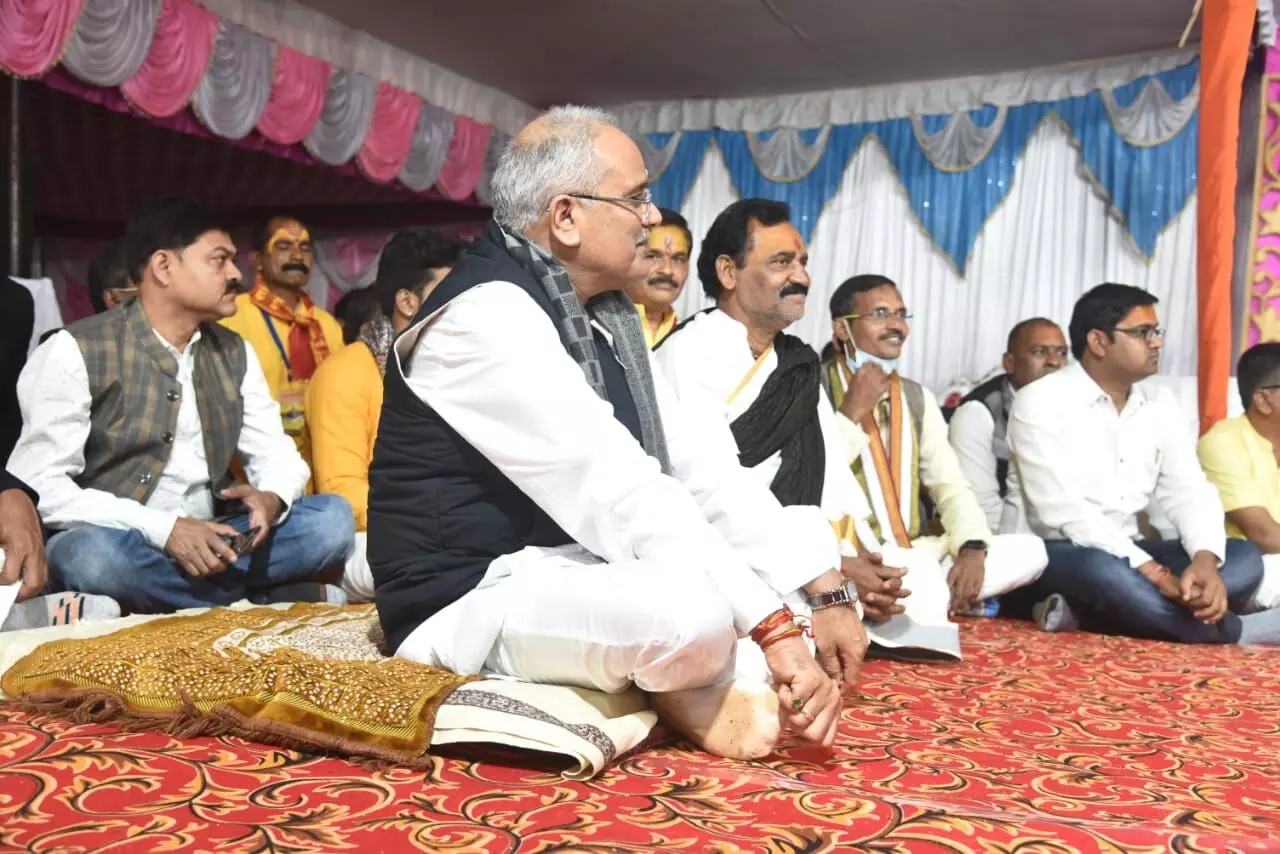 दुर्ग 10 दिसम्बर 2021। ग्राम जजंगिरी में रोहिणी गौशाला के शुभारंभ के अवसर पर आयोजित कार्यक्रम में मुख्यमंत्री भूपेश बघेल जब पहुंचे तो उन्होंने आसन पर विराजित ना होकर संतों के सम्मान में नीचे बैठना उचित समझा। इस पर मौजूद संतों ने मुख्यमंत्री की प्रशंसा करते हुए कहा कि हमेशा भारत में परंपरा रही है कि हमेशा से धर्मगुरु ऊपर विराजित होते हैं और राजा उनका सम्मान करते हुए नीचे स्थान ग्रहण करते हैं। मुख्यमंत्री ने यह परंपरा निभाई है हम उनकी नम्रता के लिए उनकी प्रशंसा करते हैं। इस मौके पर मुख्यमंत्री ने राधे निकुंज आश्रम में किए जाने वाले विभिन्न कार्यों के लिए संस्थान द्वारा किये गए आग्रह पर 50 लाख रुपये की राशि देने की घोषणा भी की।