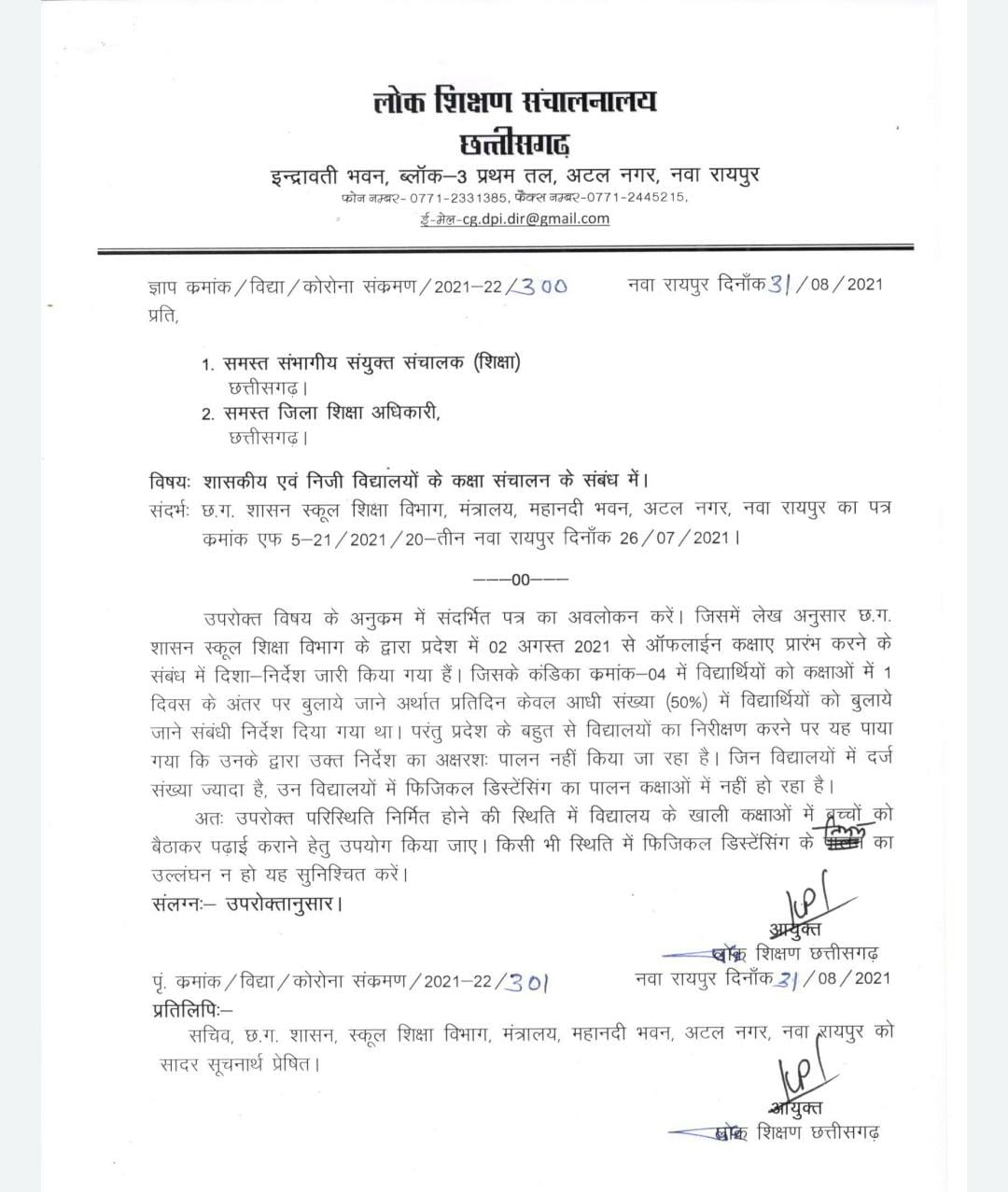 स्कूल ब्रेकिंग : स्कूलों में कोरोना नियम का पालन नहीं होने पर DPI नाराज…. सभी ज्वाइंट डायरेक्टर व DEO को भेजा सख्त निर्देश….हर हाल में करें गाइडलाइन का पालन