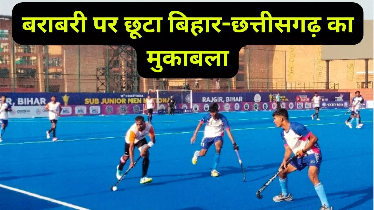 Bihar Hockey Mahakumbh : राजगीर स्पोर्ट्स एकेडमी परिसर में राष्ट्रीय सब जूनियर मेंस हॉकी टूर्नामेंट के उद्घाटन मैच में बिहार और छत्तीसगढ़ का मुकाबला 2-2 की बराबरी पर छूटा। दोनों टीमों के बीच काफी रोमांचक मुकाबला देखने को मिला। दोनों टीमों ने शुरुआत से ही आक्रामक खेल का परिचय दिया।