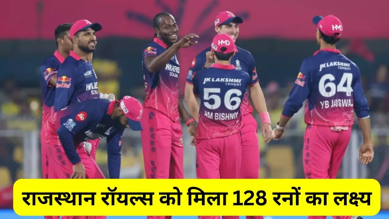 राजस्थान रॉयल्स की टीम की तरफ से जोफ्रा आर्चर ने 2, नांद्रे बर्गर ने 2, बृजेश शर्मा ने 1, संदीप शर्मा ने 1, रवि बिश्नोई ने 1 और रविंद्र जडेजा ने 2 विकेट झटके। फिलहाल राजस्थान रॉयल्स को जीत के लिए 128 रन का लक्ष्य मिला है।