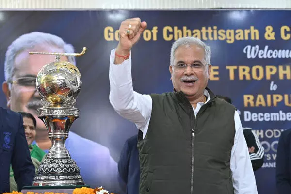PHOTO-छत्तीसगढ़ में चक दे इंडिया: CM भूपेश ने उठाई हाकी विश्वकप की ट्राफी, भारत को विश्व विजेता बनने के लिए दी शुभकामनाएँ