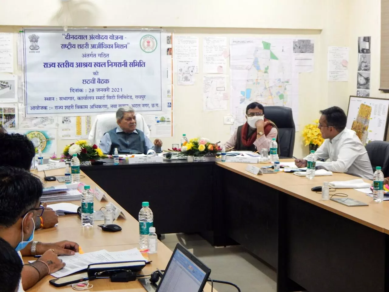 रायपुर 29 जनवरी 2021। दीनदयाल अंत्योदय योजना के अंतर्गत गठित राज्य स्तरीय आश्रय स्थल निगरानी समिति की बैठक समिति के अध्यक्ष सुयोग्य कुमार मिश्रा की उपस्थिति में आयोजित हुई। बैठक में उन्होंने निर्देशित किया है कि कोरोना काल के परिपेक्ष्य में शहरी बेघरों की वास्तविक स्थिति प्राप्त करने नगरीय निकाय पुनः सर्वेक्षण करें और इसके आधार पर आश्रय स्थल की क्षमता निर्धारण के लिए प्रस्ताव तैयार करें। इस बैठक में समिति के सदस्य श्री गौतम बंदोपाध्याय, रायपुर नगर पालिक निगम आयुक्त सौरभ कुमार, शहरी विकास अभिकरण के मुख्य कार्यपालन अधिकारी सौमिल रंजन चौबे, उपमुख्य कार्यपालन अधिकारी श्री राजेंद्र कुमार दोहरे, परियोजना अधिकारी मिथलेश अवस्थी भी सम्मिलित थे।