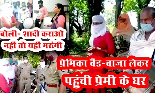 गोरखपुर 4 जून 2021। …प्यार में बेवफाई पर खफा प्रेमिका बैंड-बाजा लेकर प्रेमी के घर पहुंच गयी। प्रेमिका ने प्रेमी के घर के बाहर बैंड बजवाना शुरू कर दिया और ऐलान कर दिया कि जब तक उससे उसकी शादी नहीं होगी, वो यही रहेगी। अजब प्रेम की गजब कहानी यूपी के गोरखपुर का है। जहां प्रेमी की दूसरी जगह शादी तय...