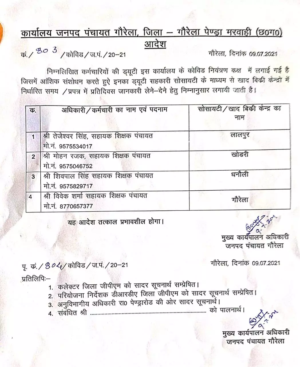 आदेश में गौरेला जनपद सीईओ ने लिखा है…