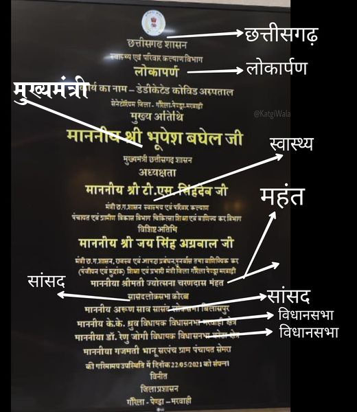 ऐसे भी आये दिन कुछ ना कुछ अफसरों के कारनामे सामने आ रहे हैं, जिसने सरकार की भद पिटवाई है, लेकिन आज तो इंतहा ही हो गयी। मुख्यमंत्री से आज गौरेला-पेंड्रा-मरवाही के जिस कोविड हास्पीटल का उदघाटन कराया गया, उस हॉस्पीटल के शिलालेख में इतनी गलतियां लिखी थी, कि हिंदी भी शरमा जाये। ना शिलालेख में किसी का नाम सही लिखा था, ना ही पदनाम। पूरे शिलालेख ही गलतियों से भरा हुआ था।