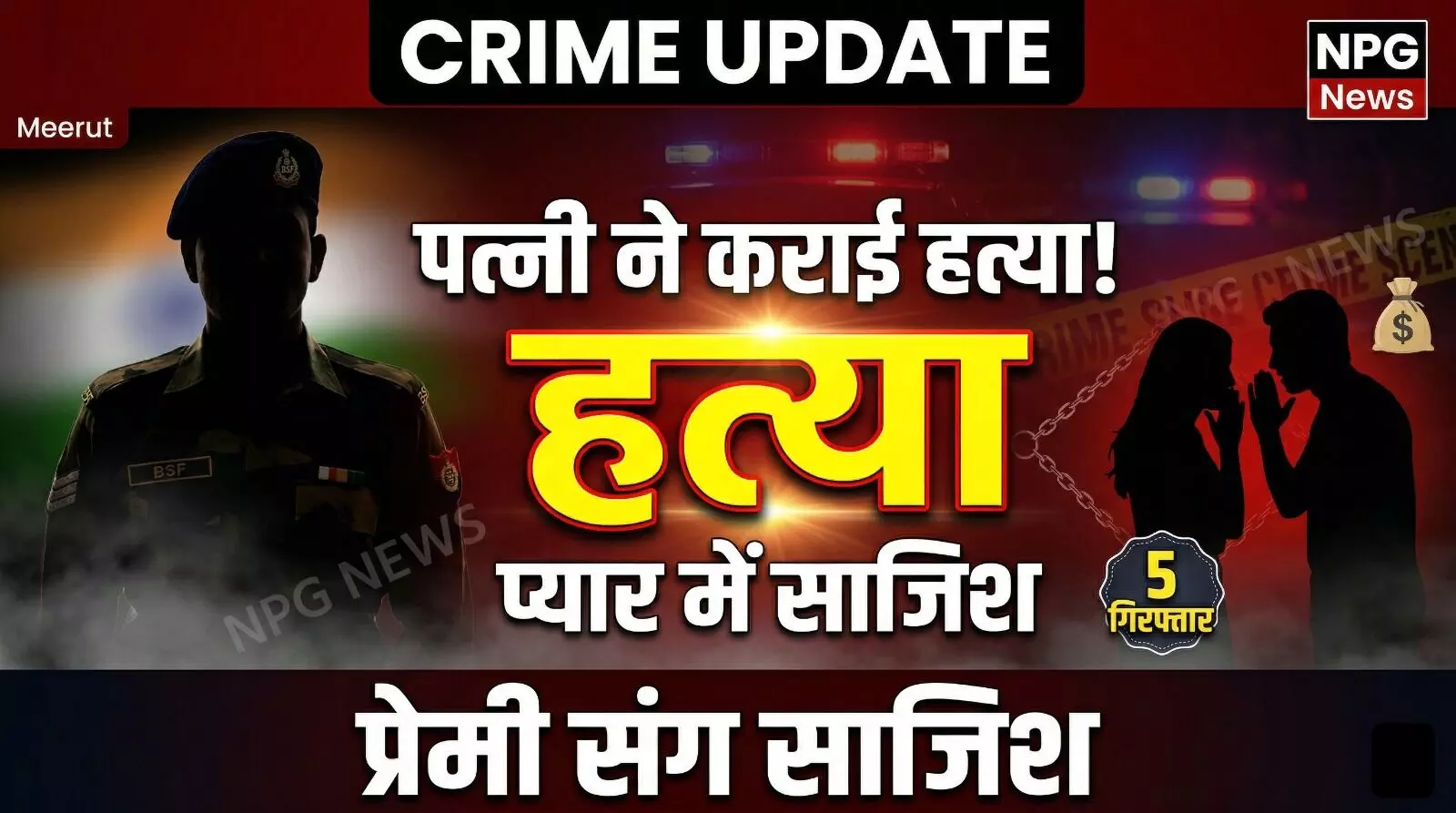 Meerut BSF Jawan Murder Case: मेरठ के धनपुर में बीएसएफ जवान नैन सिंह की हत्या का खुलासा। पत्नी ने प्रेमी के लिए जेवर बेचकर दी थी सुपारी। पुलिस ने 5 आरोपियों को गिरफ्तार कर जेल भेजा।