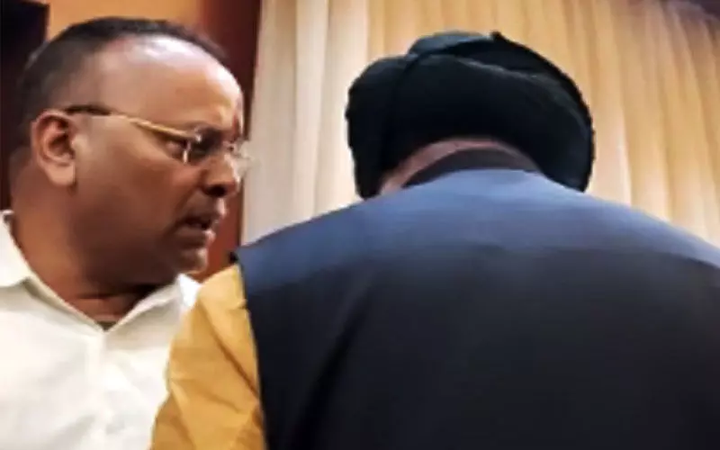 रायपुर 7 फरवरी 2021। ….केंद्रीय मंत्री हरदीप पुरी के प्रोग्राम के दौरान बीजेपी दफ्तर में बखेड़ा हो गया। बैठक की सूचना को लेकर बीजेपी प्रदेश महामंत्री भूपेंद्र सवन्नी और पूर्व मंत्री अजय चंद्राकर में तीखी बहस हो गयी। केंद्रीय मंत्री की मौजूदगी में अजय चंद्राकर प्रदेश महामंत्री भूपेंद्र सवन्नी को ये कहते नजर आये कि ” मेरे से थोड़ा ठीक से व्यवहार किया करो”