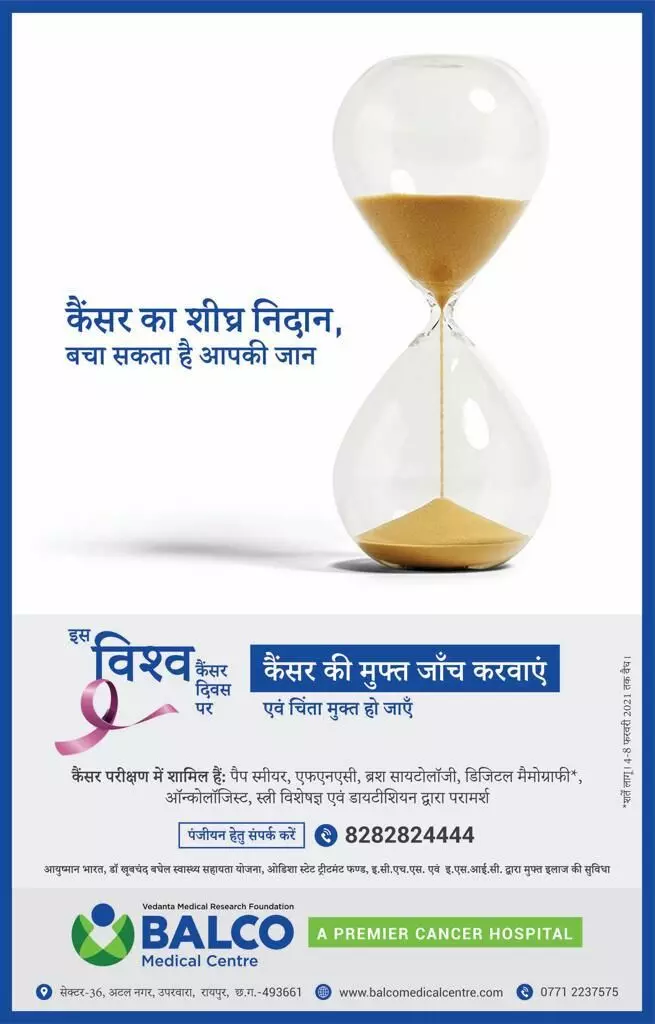 रायपुर 3 फरवरी 2021। विश्व कैंसर दिवस के अवसर पर बालको मेडिकल सेंटर कैंसर के प्रति जागरूकता लाने के लिए कटिबद्ध है। मध्य भारत का सुप्रसिद्ध एवं सर्व सर्वसुविधायुक्त,आधुनिक कैंसर अस्पताल, बालको मेडिकल सेंटर इस वर्ष “योगाथॉन” का आयोजन कर रहा है।